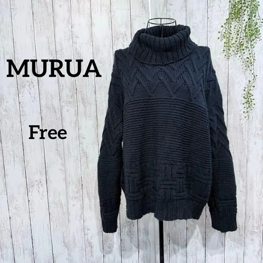 무루아 니트 워셔블 스웨터 L 터틀넥 케이블 짜임 그레이