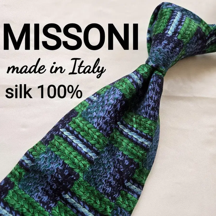 새상품급 missoni 실크 100% 넥타이 그린 체크