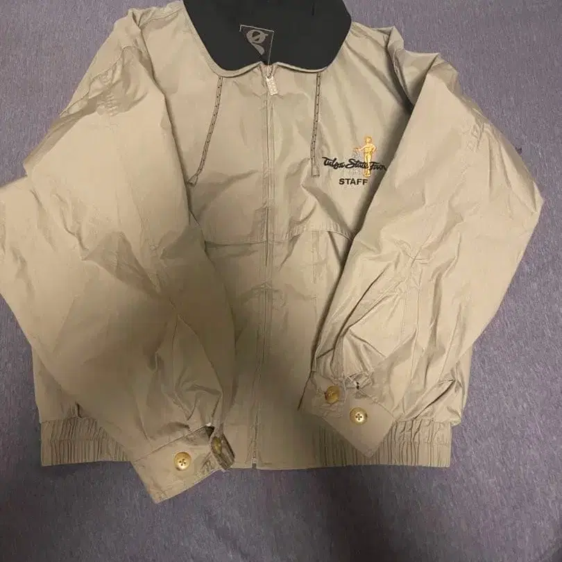베이지 나일론 자켓, 스태프 로고와 버튼이 달린 포켓이 특징입니다. 어느 회사 스태프의 자켓이라고 생각합니다. 오사카의 구제 의류점에서 구매했습니다. - 색상: 베이지 - 디자인: 스태프 로고 포함 - 옷깃 색상: 블랙 - 포켓: 버튼이 달린 포켓 방문해 주셔서 감사합니다.