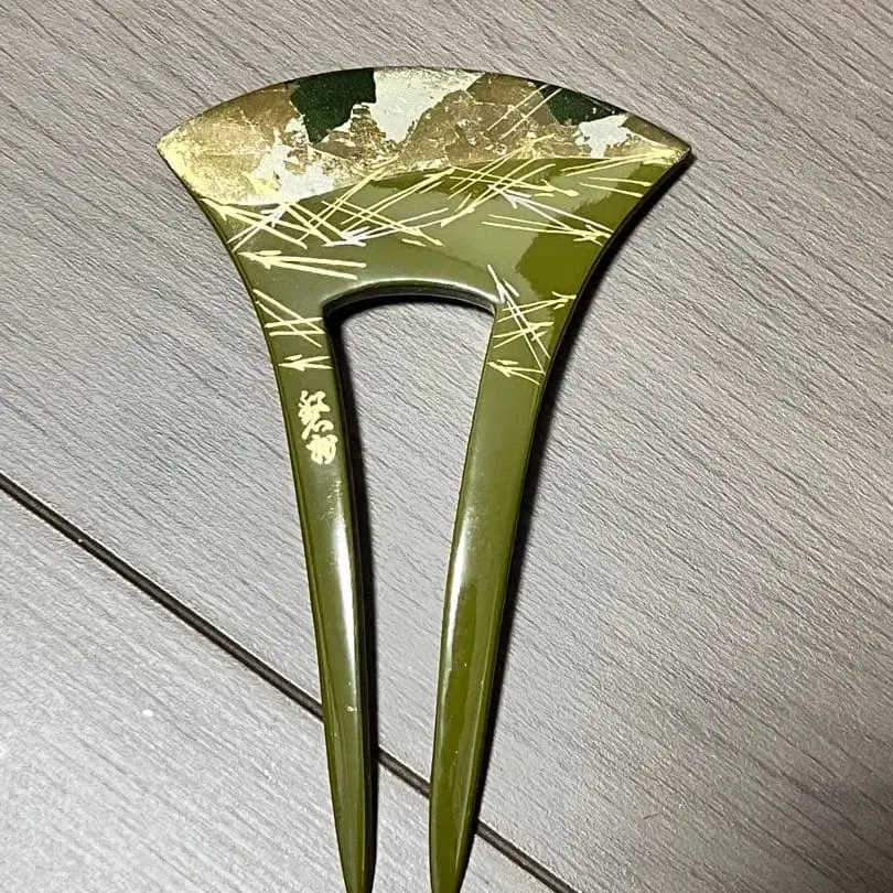 그린 컬러 금박 무늬 헤어콤 일본 의류 기모노