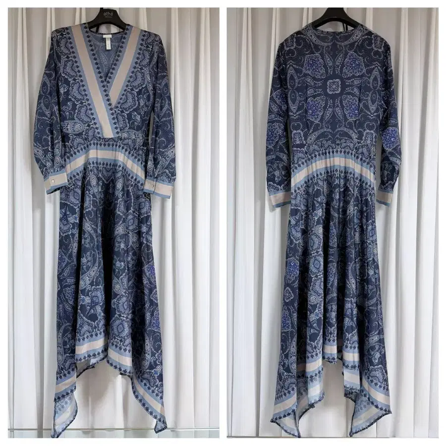 H&M 네이비 페이즐리 무늬 긴팔 원피스