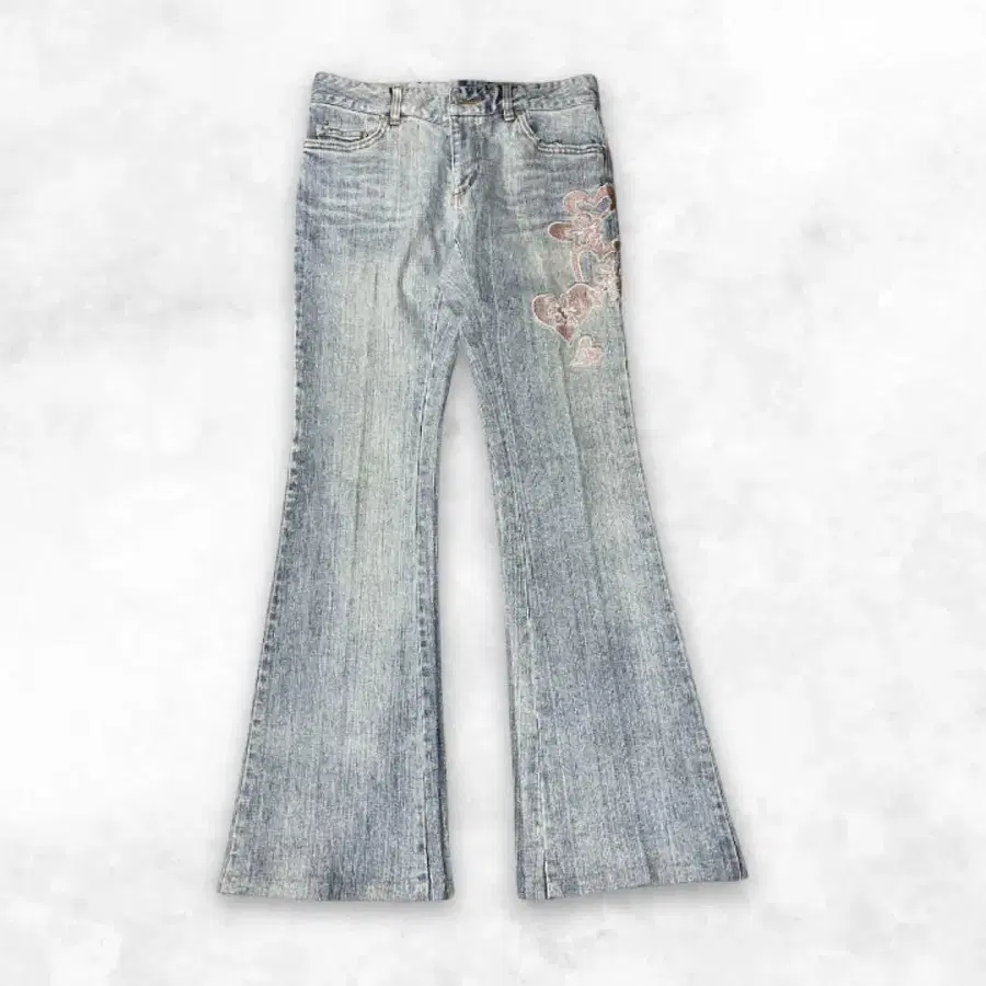 자동 번역되었어요. 원문보기[ 레어 Y2K ] 하트 자수 디자인 플레어 데님 벨보텀