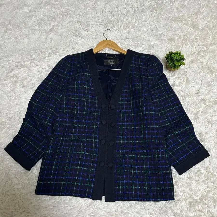 노카라 자켓 체크 무늬 니트 가디건