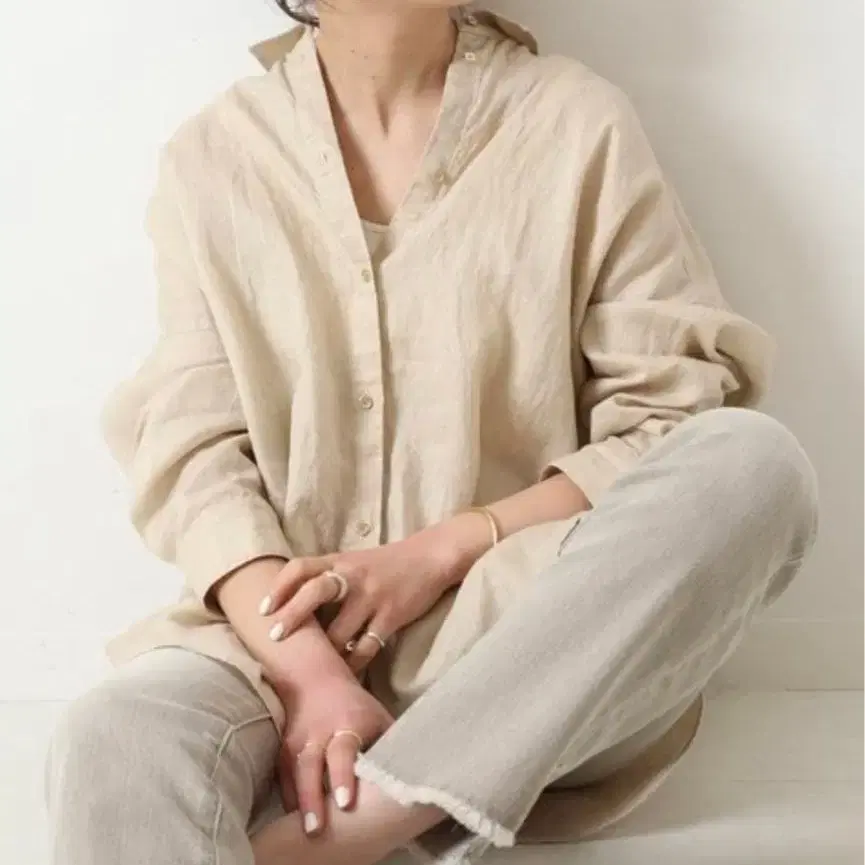 spick and span 80 린넨 빅 실루엣 셔츠 골드 버튼