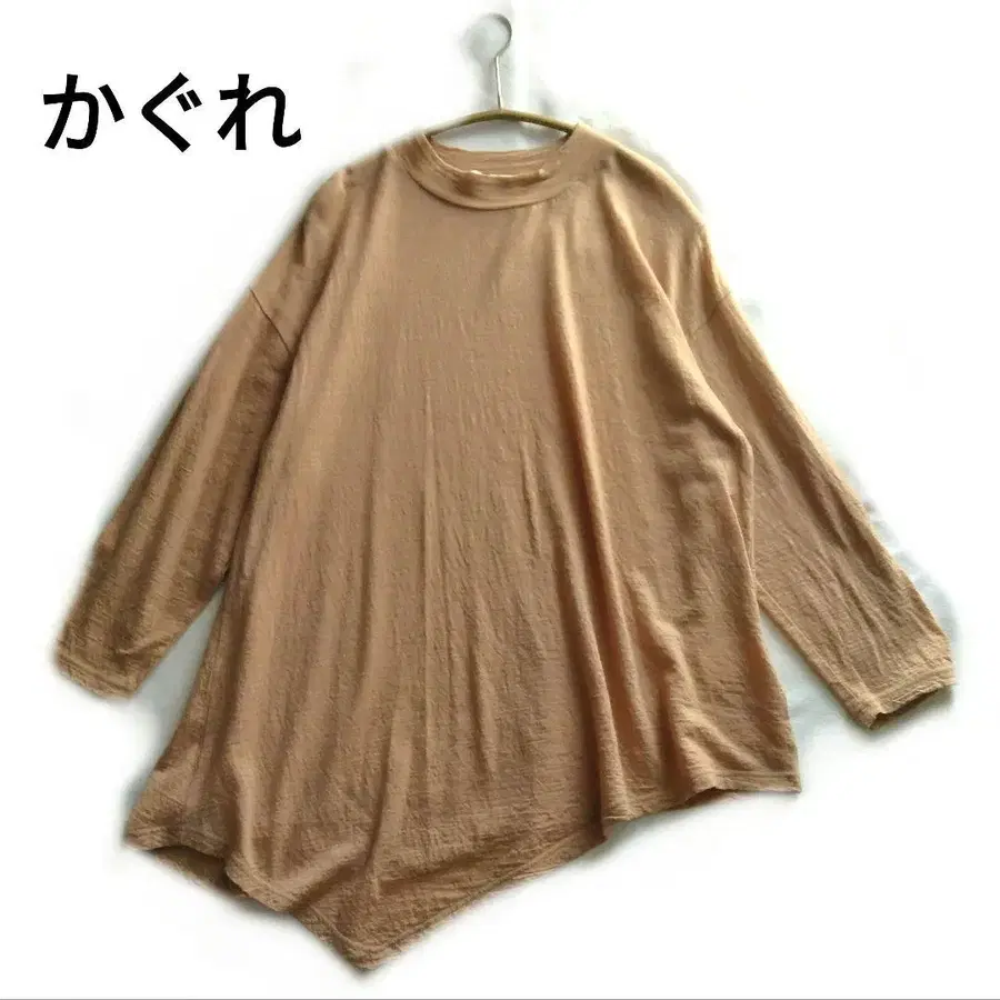 카구레 워셔블 하이넥 니트 베이지 변형 주름 가공 불규칙 헴