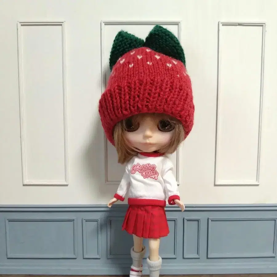 네오 브라이스용 핸드메이드 딸기 니트 모자 (빨간색)