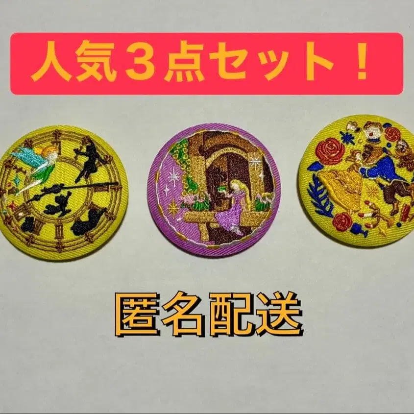 [인기 3종 세트] 디즈니 자수 캔뱃지 (라푼젤, 벨, 피터팬)