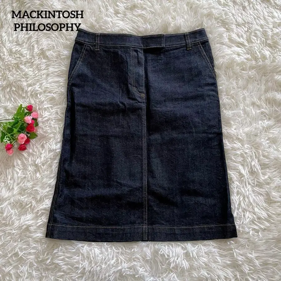 새상품급 매킨토시 데님 무릎 기장 스커트 루즈핏 타이트 M 워셔블 면
