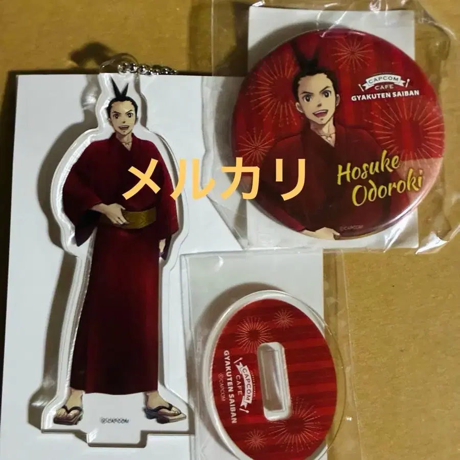 역전재판 캡콤 카페 아크릴 스탠드+캔뱃지 세트 오도로키 호스케