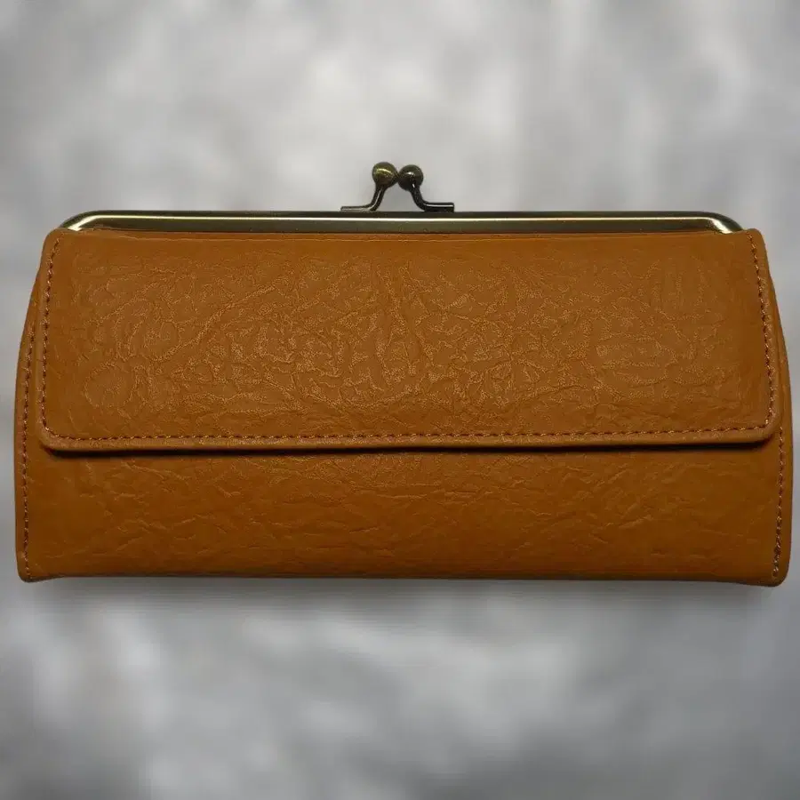 오렌지 머스타드 계통 가마구치 장지갑 미사용 새상품 주름 가공 인조 가죽