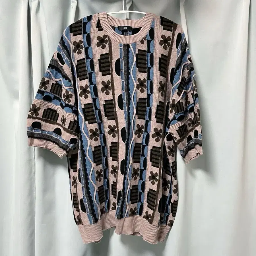 HARE 레트로 플라워 3D 니트 브라운 스카이블루 반팔