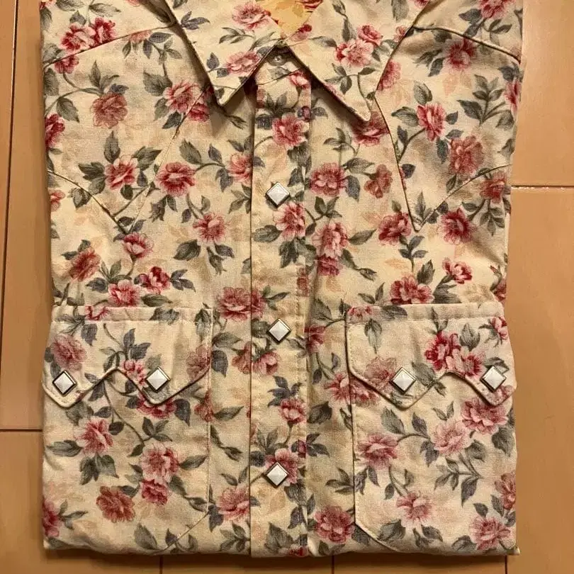새상품급 락 마운트 빈티지 긴팔 셔츠 꽃무늬 멋스러운 크림색
