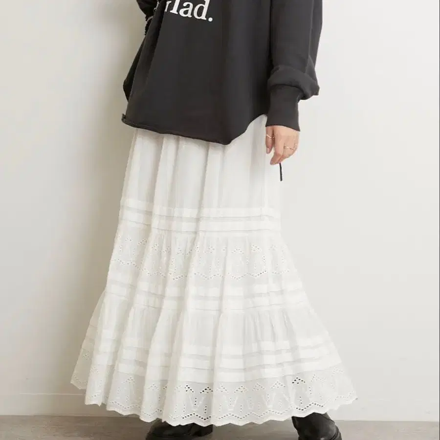 새상품급 코튼 보일 턱 자수 롱 스커트