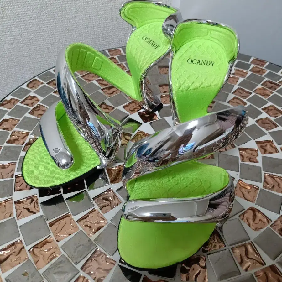 OCANDY 크로스 스트랩 샌들 그린/실버
