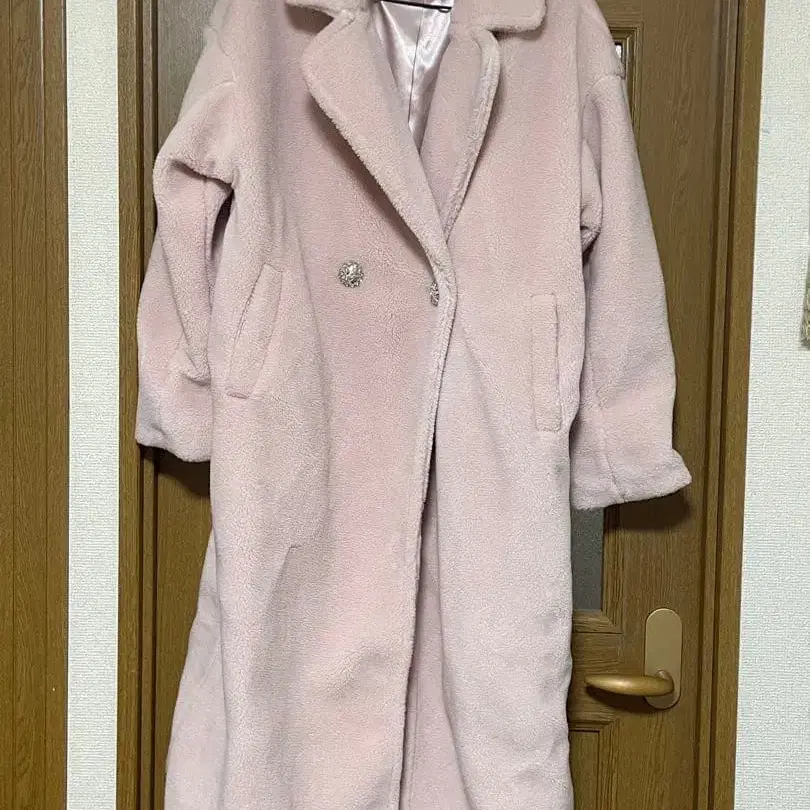 핑크 플리스 롱 코트