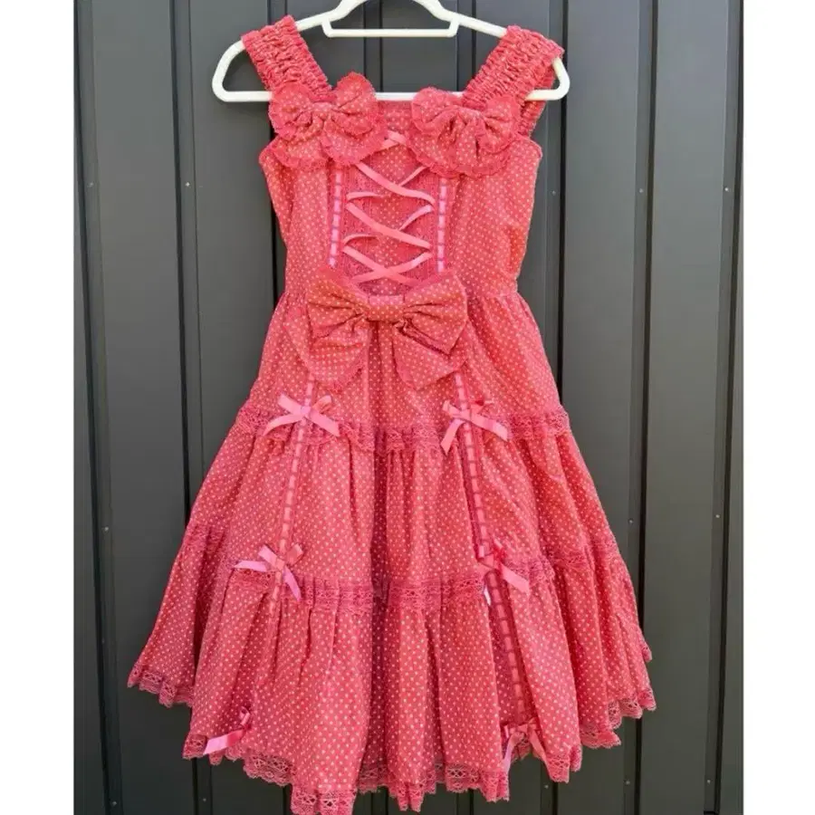 C1 엔젤릭 프리티 벨벳 오버롤 스커트 도트 리본 핑크