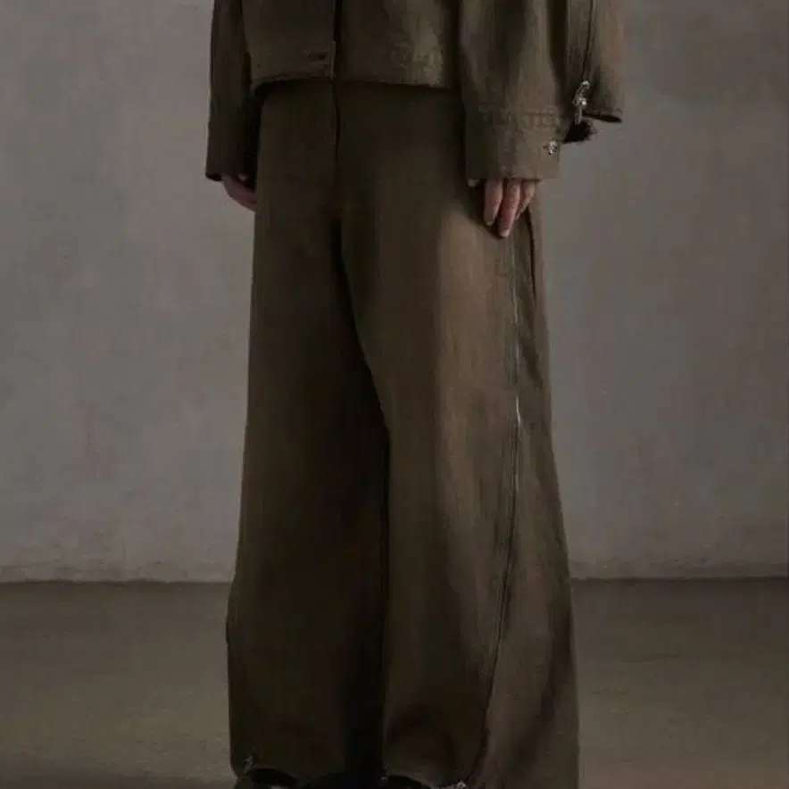 GRANCY 지퍼 디자인 배기 데님 팬츠 브라운 S 사이즈