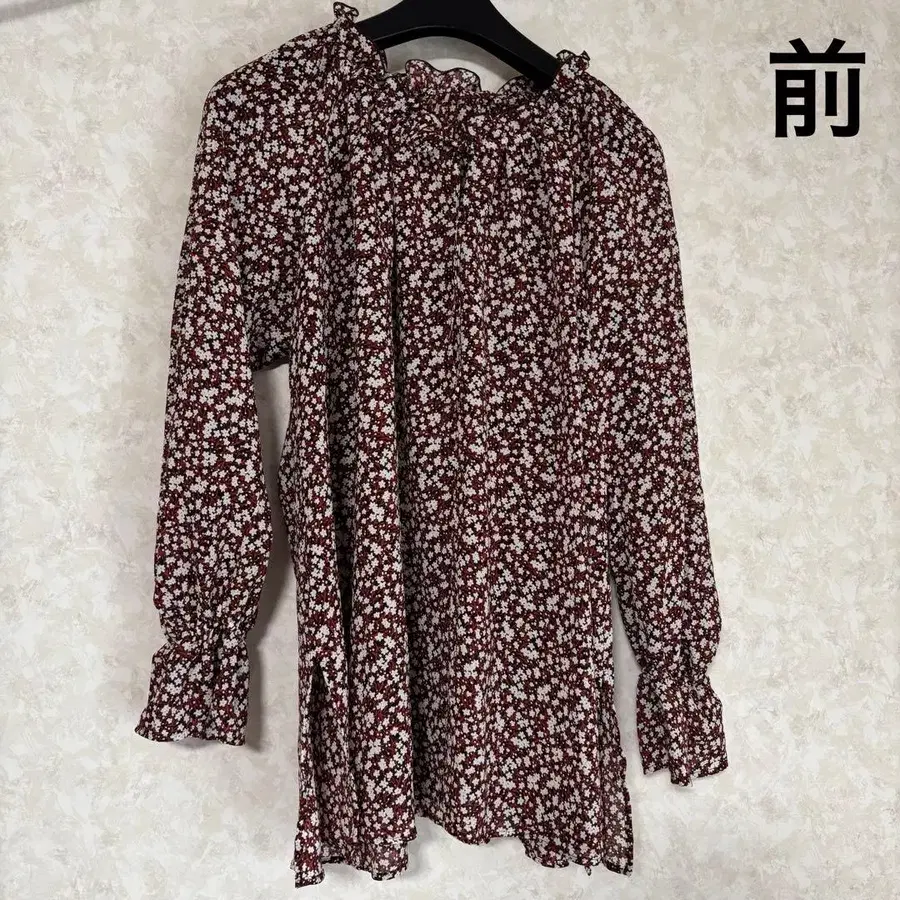 자동 번역되었어요. 원문보기쿠미쿄쿠의 빨간색 꽃무늬 디자인으로, 프릴 소매가 특징인 얇은 소재의 긴팔 블라우스입니다.