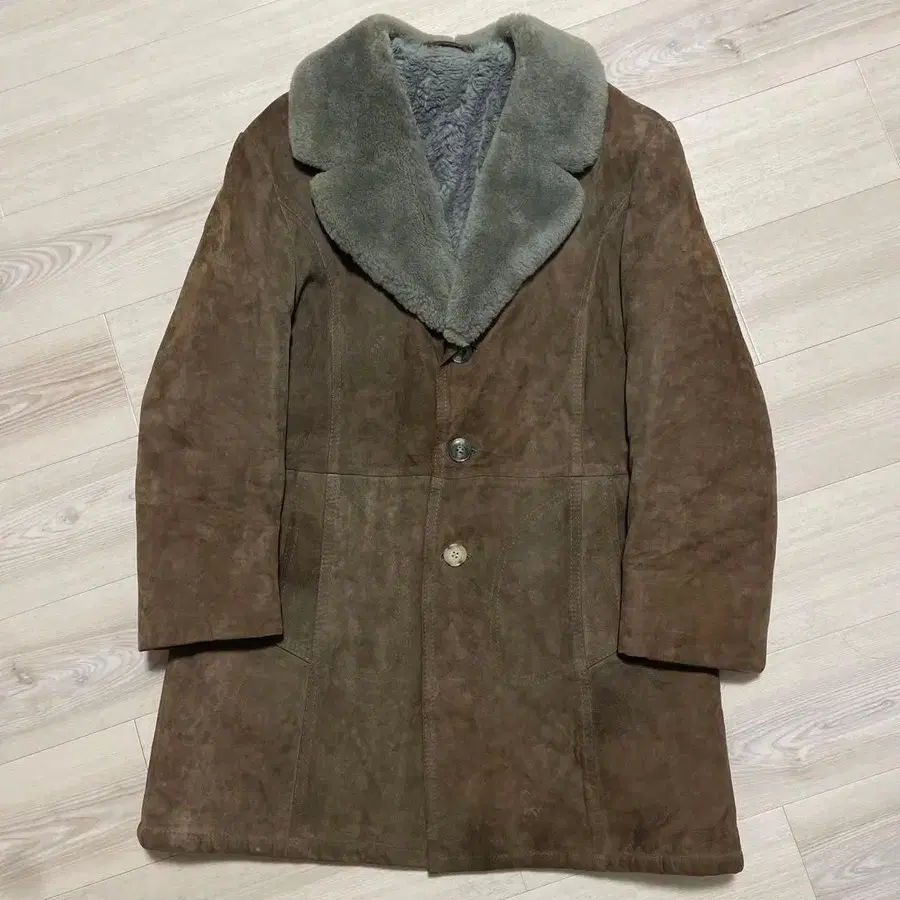 브라운 가죽 퍼 포함 무스탕 코트 XL