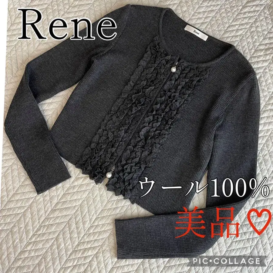 Rene 르네 펄 집업 가디건 34 블랙 울 100%