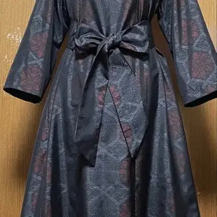 기모노 리메이크 오시마 A라인 원피스 동일 원단 끈 리본 벨트 포함