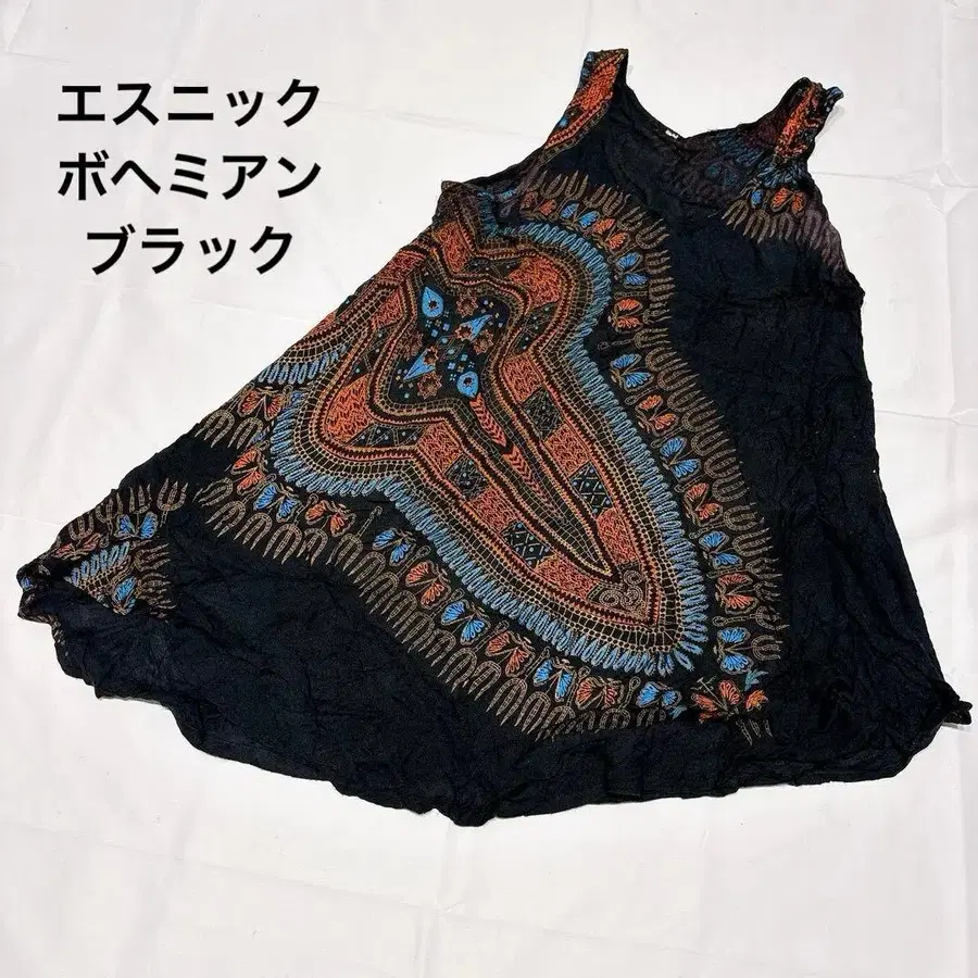 슬리브리스 튜닉 보헤미안 에스닉 아시안 비대칭 블랙