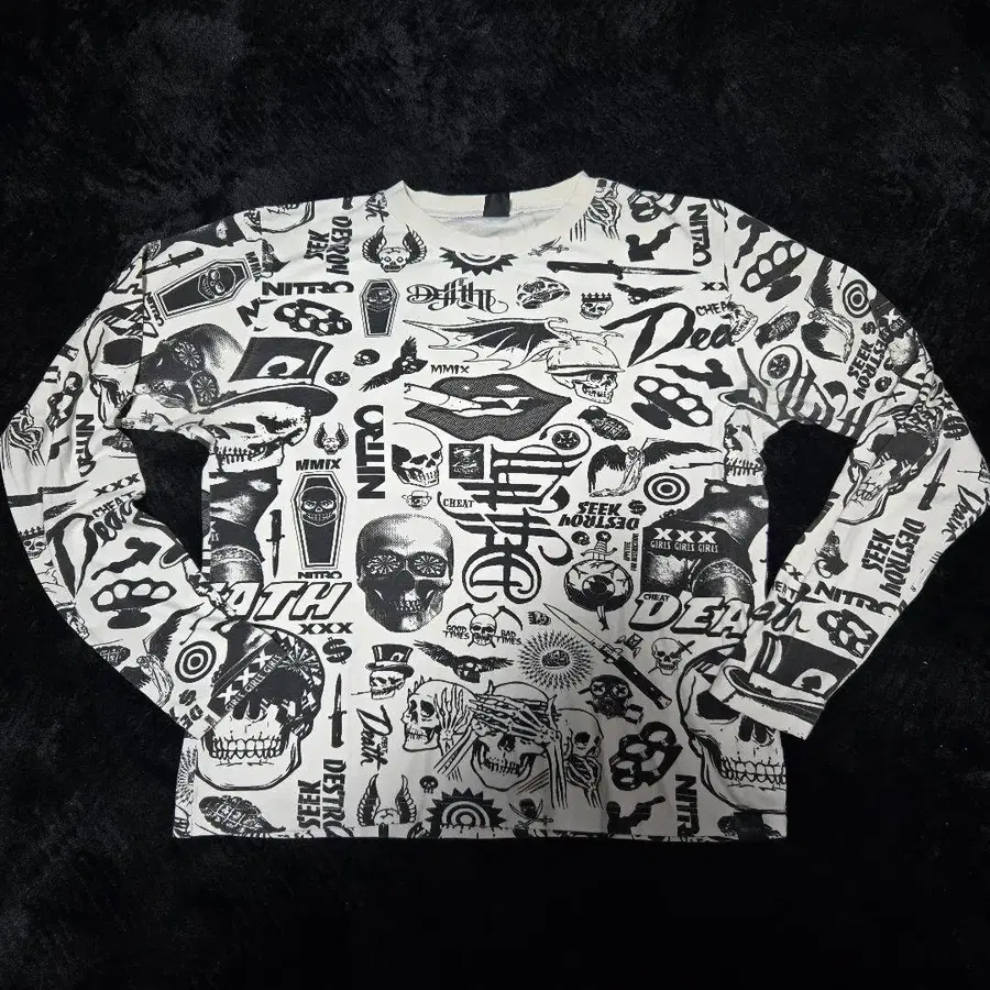 NITRO 스컬 프린트 긴팔 T셔츠 스케이트 스트릿