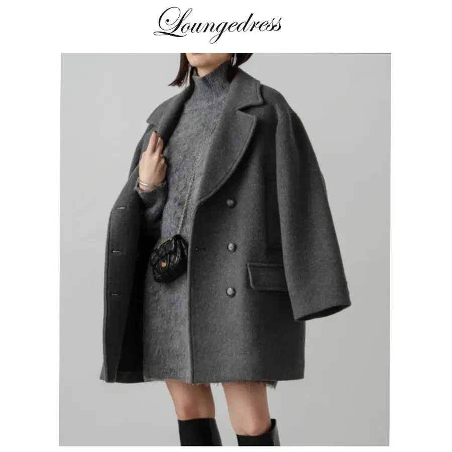 • 새상품급 르농큐르 울 라이크 더블 브레스트 롱 코트 그레이