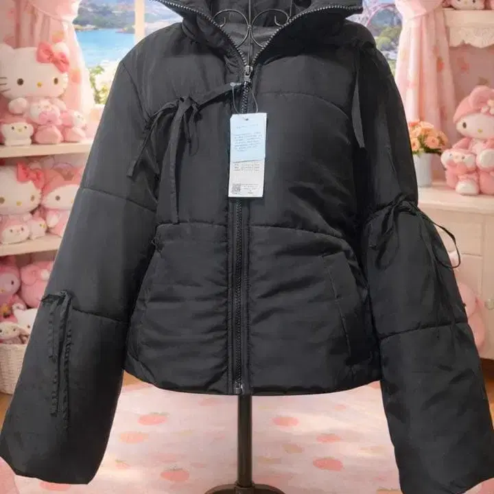 택 포함 새상품 빅 사이즈 L 블랙 퍼퍼 자켓 리본 포함 충전솜 관N