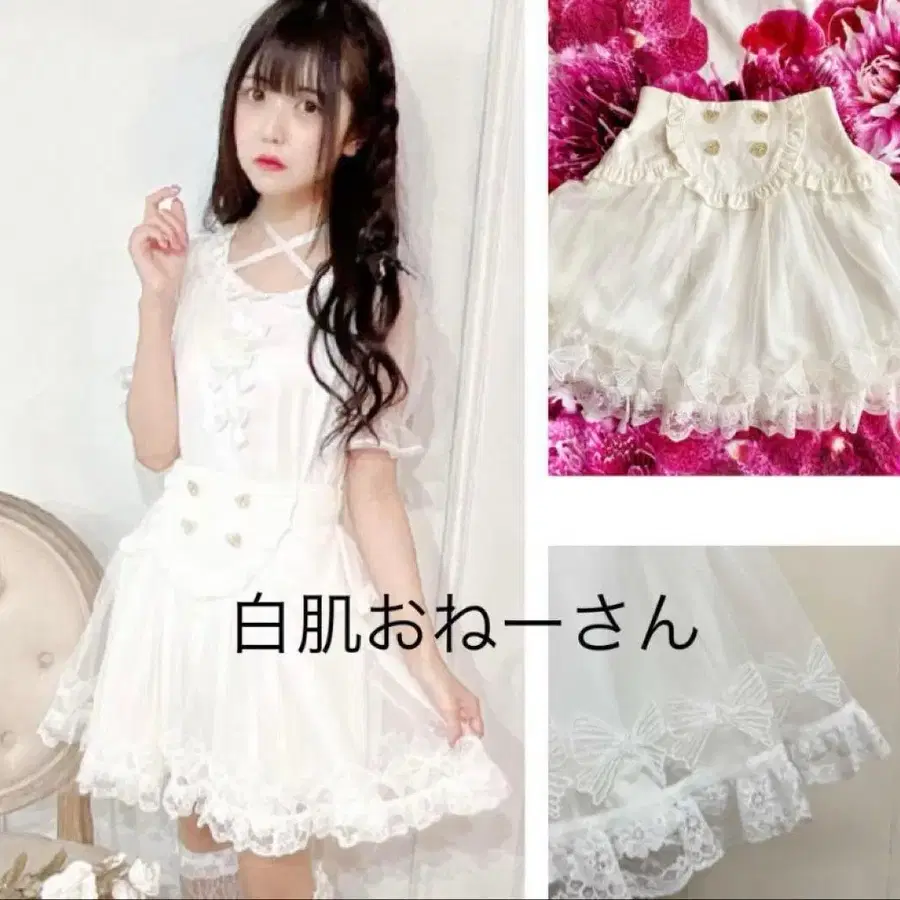 MARS 프리메로 리본 무늬 프릴 레이스 스커트 화이트