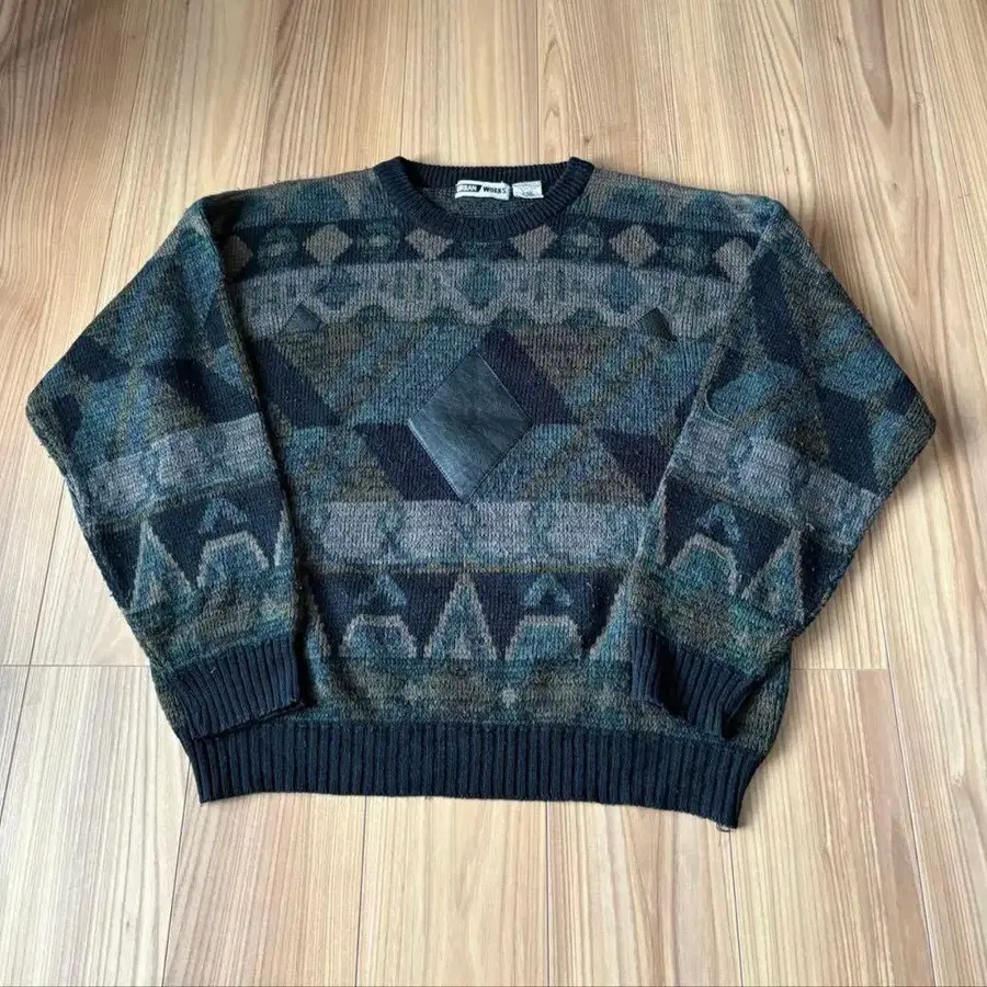 URBAN WORKS 빈티지 총 패턴 니트 가죽 절개 한국제