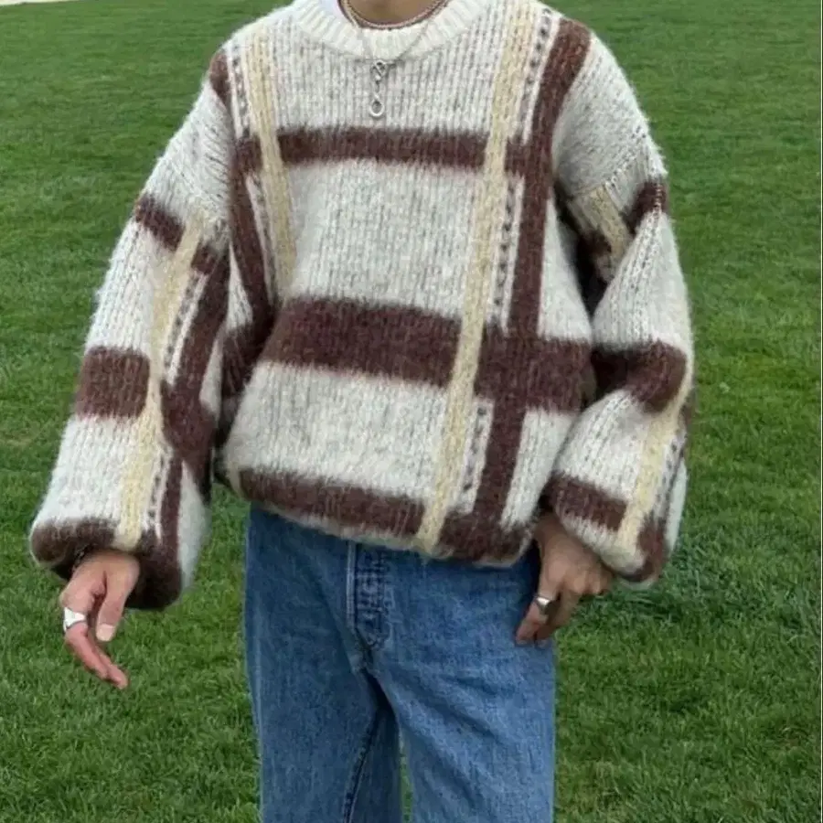 nugu 체크 모헤어 라이크 볼륨 니트