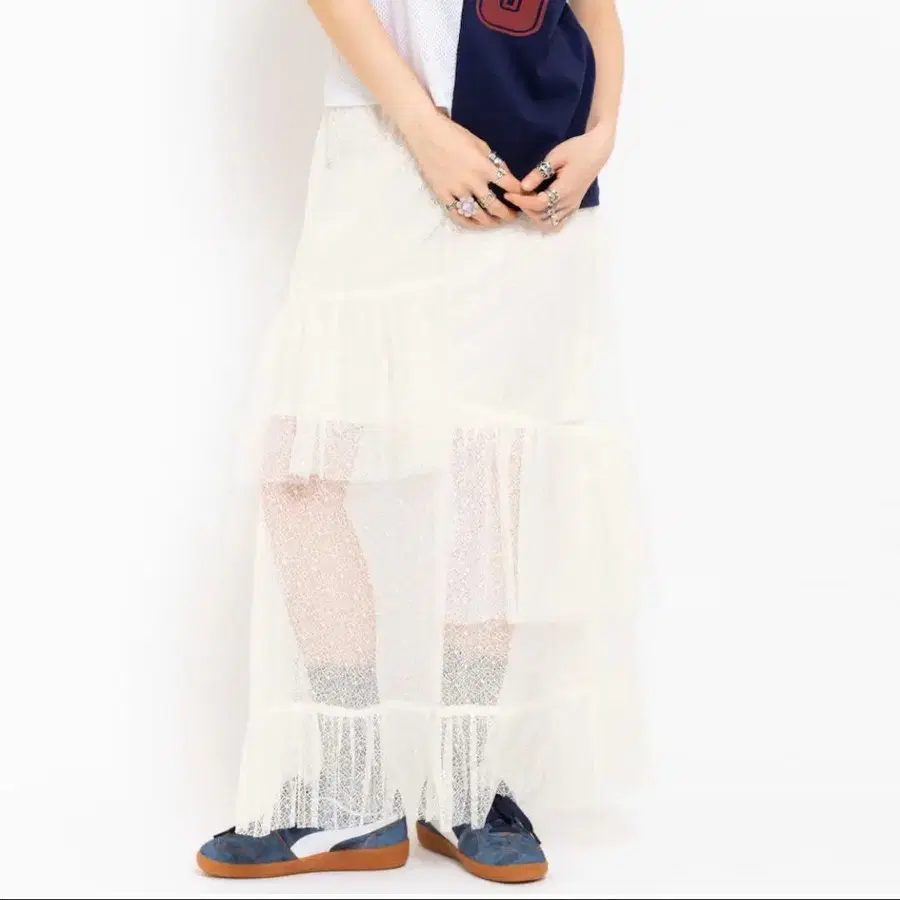 새상품 아토모스 핑크 레이스 플레어 티어드 스커트 아이보리색