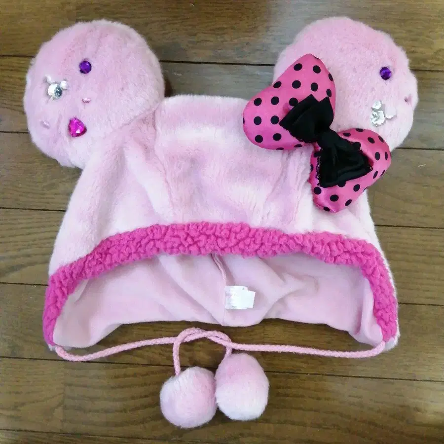 디즈니 리조트 미니 팬캡 도트 리본 단종 폼폼 핑크