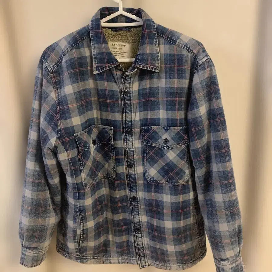 BAYFLOW 체크 무늬 긴팔 셔츠 플리스 자켓