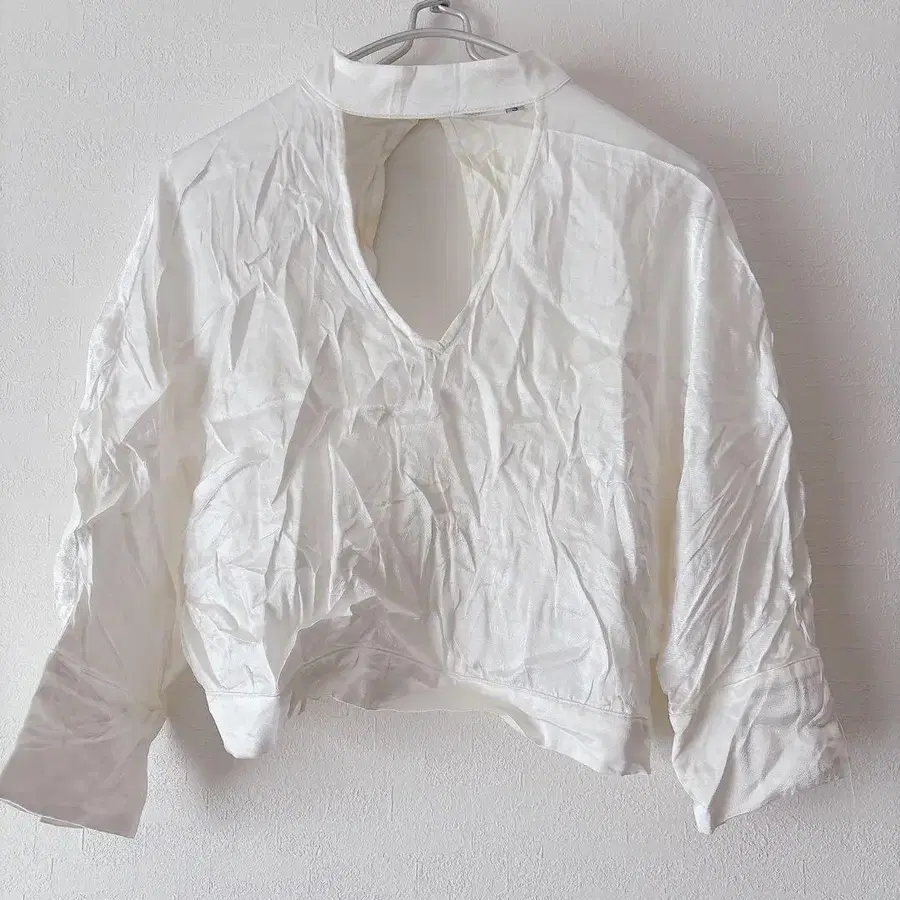화이트 V넥 등 트임 크롭 셔츠 [ M ]