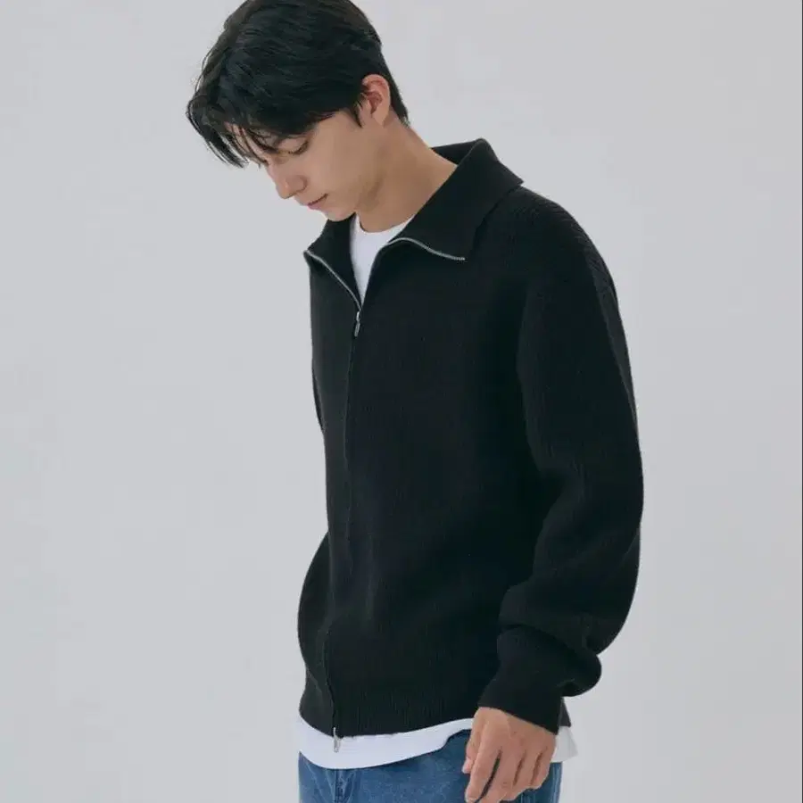MUSINSA AGOD 블랙 하이넥 지퍼 니트
