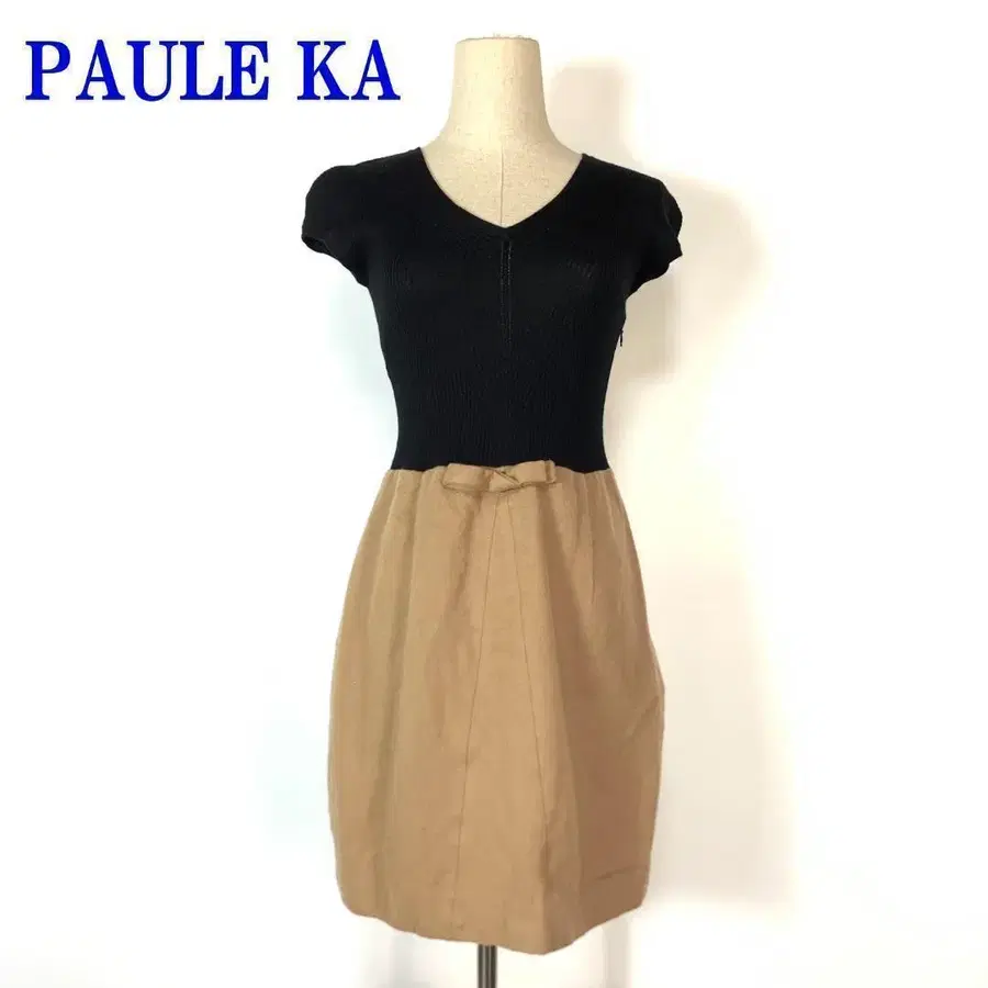 폴카 리브 니트 도킹 원피스 블랙 베이지 38 C511