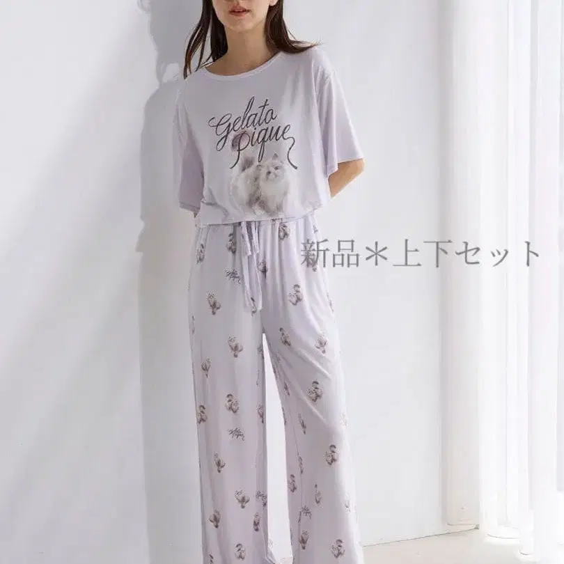 [ Xmas 가격 ] 젤라또피케 상하의 세트 캣 디자인 라벤더