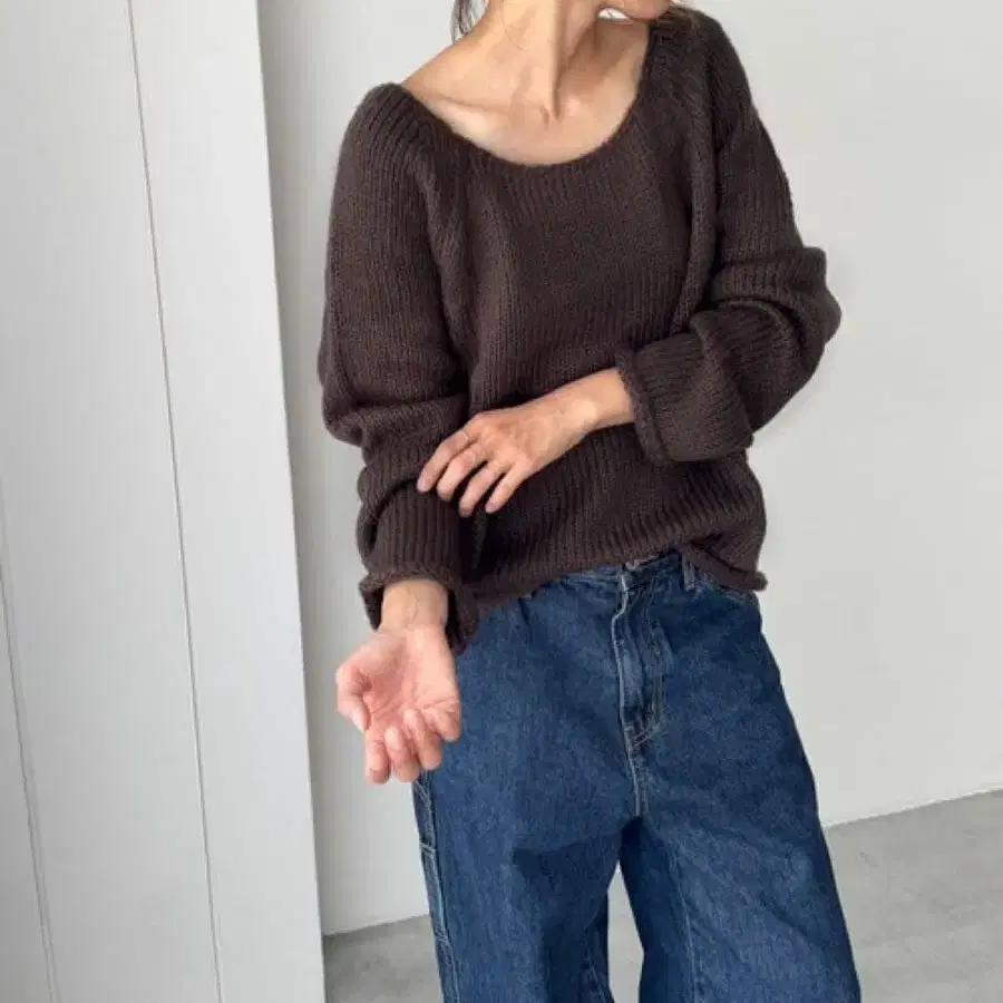 새상품 CANAL JEAN El mar 래글런 보트넥 니트 브라운