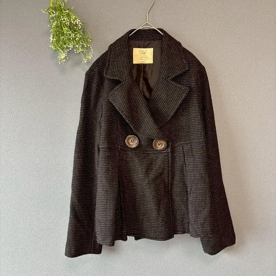 알이이 ( F ) 레트로 귀여운 빅 칼라 x 장식 버튼 도트 무늬 숏코트