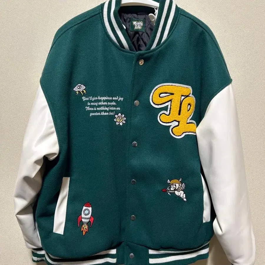 that's LIFE 자수 바시티 자켓 그린/화이트
