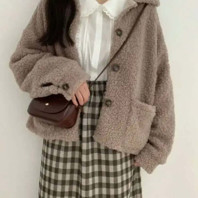 • 아이보리 (브라운) 보아 자켓 (양면 착용 가능)