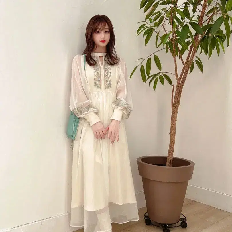 [새상품급] dazzlin 자수 화이트 롱 드레스