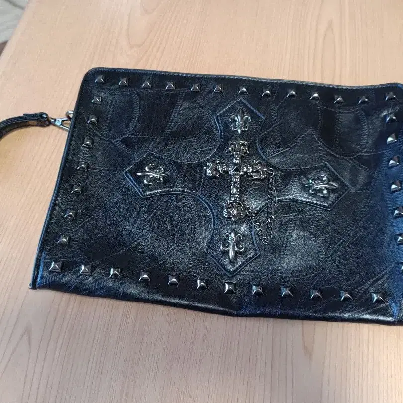 가죽 클러치백 스터드 크로스 모티브 천연 가죽