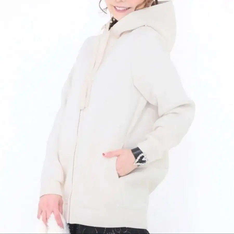 앤드러브 화려한 펄 비쥬 후드티 튜닉 에크루 L 미사용 새상품