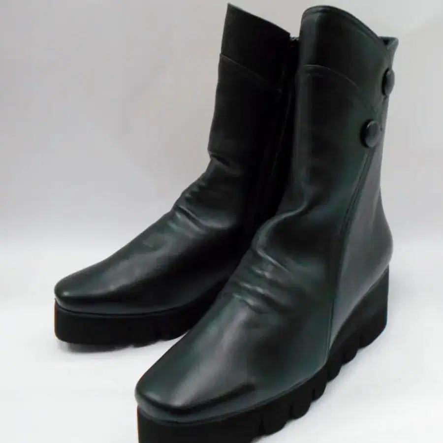 천연 가죽 통굽 웨지솔 숏부츠 블랙 22.5cm 3E