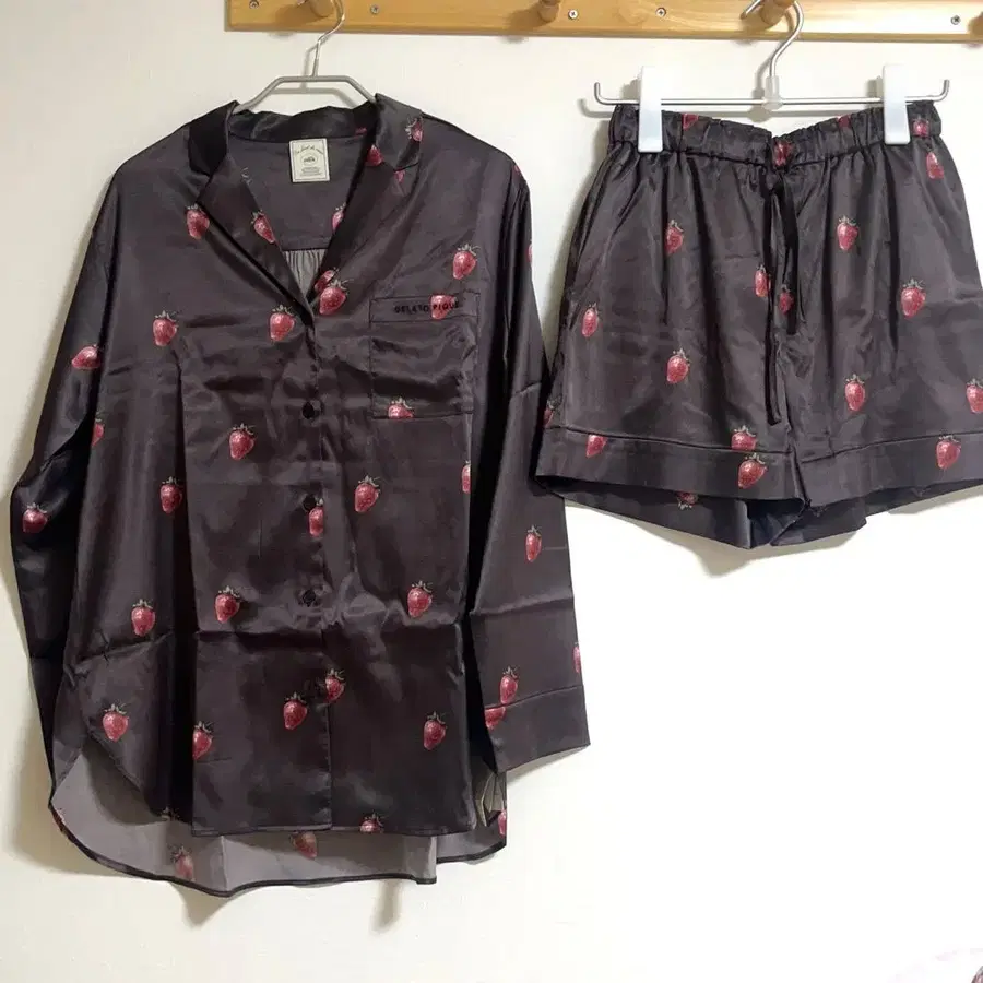 [ 택 포함 새상품 ] 스트로베리 패턴 트윌 셔츠 숏팬츠 셋업