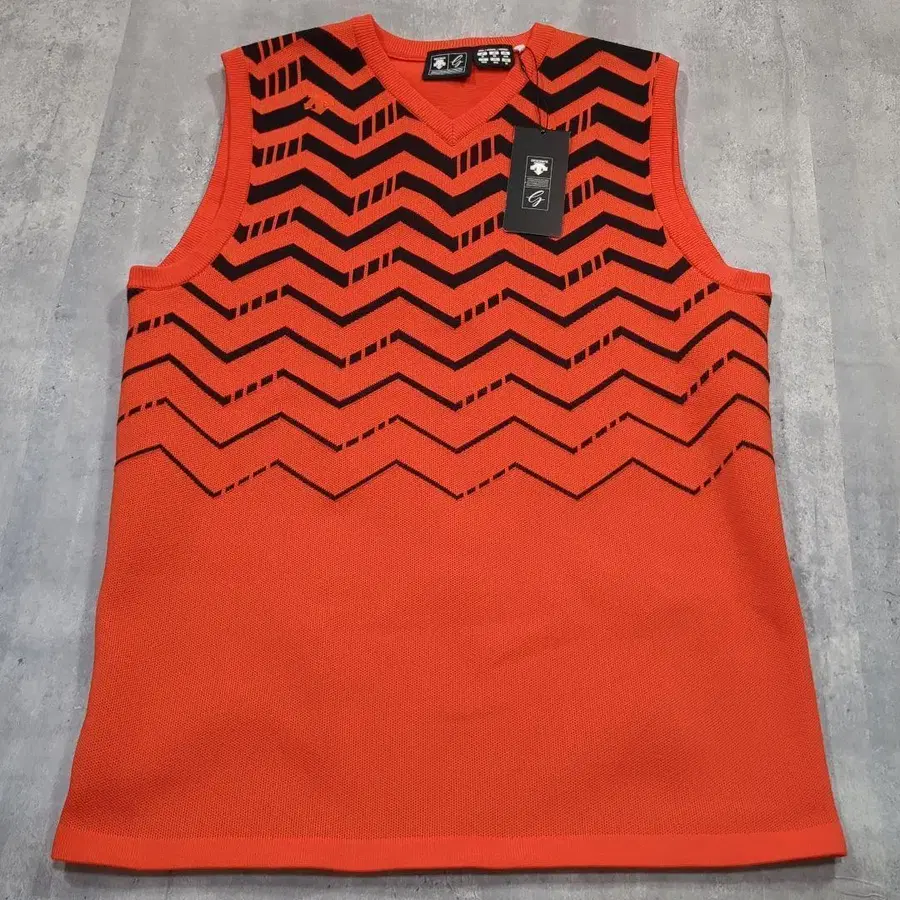 [ 미사용 택 포함 ] 데상트 오렌지 지그재그 무늬 슬리브리스 베스트 M