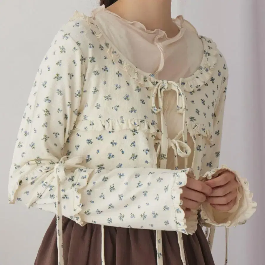 merry jenny floral 프릴 리브 볼레로 아이보리